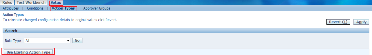 • Click on any link below Attribute Conditions Action Types / Approver Groups or Rules to directly go that page.